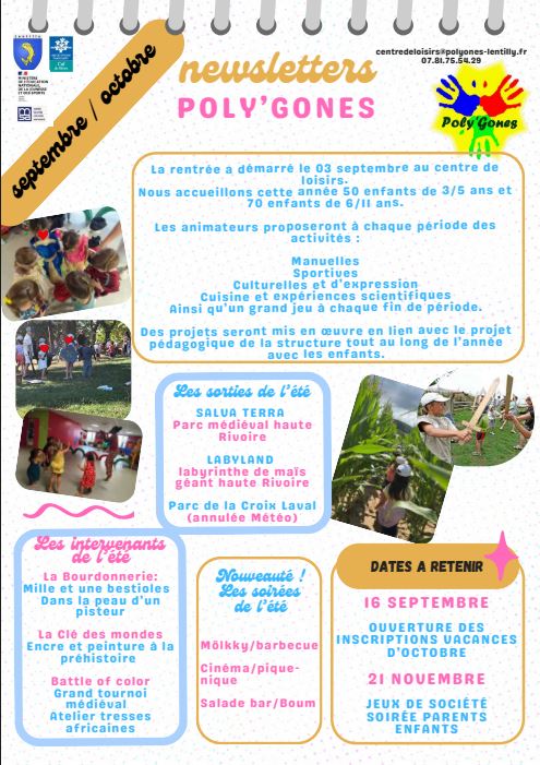 Découvrez aussi notre nouvelle gazette avec quelques photos des sorties de l'été et les dates importantes à retenir, notamment la 1e soirée jeux de société parents/enfants prévue le 21 novembre :