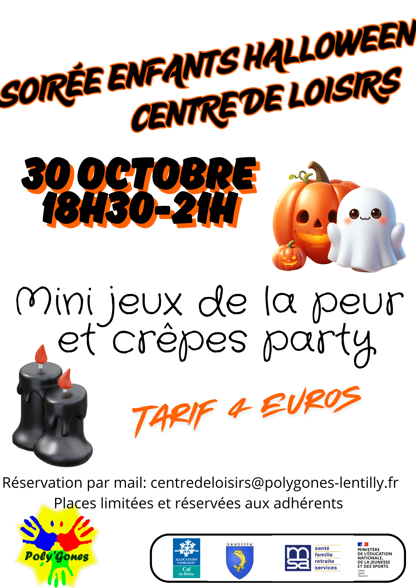 Le Centre de Loisirs propose une super Soirée Halloween pour les enfants le jeudi 30 octobre de 18h30 à 21h !